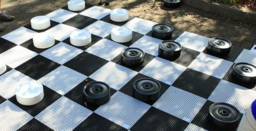 Le plateau de jeu vous offre une aire de jeu de 1.24 mètre de longueur sur 1.24 mètres de largeur. !! 24 Pions de dames géant XL pour mettre dans votre jardin ou dans une école, un centre de loisirs, pour une animation.