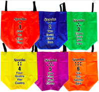 Le jeu comprend 6 sacs de saut de couleurs différentes, numérotés de 1 à 6, numéros exprimés en français, anglais et allemand.
