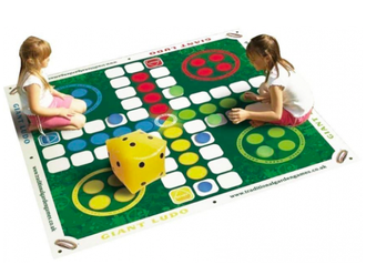 Ce jeu contient: - 1 plateau de jeu en PVC - 1 dé gonflable - 4 x 4 pions de couleurs ( rouge, jeune, vert et bleu) - 8 chevilles pour fixation