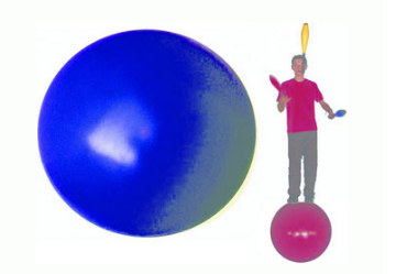 ballon géant de 1m de diamètre, très léger spécialement conçu pour le jeu du "Kinball" livré avec un gonfleur spécial, 3 jeux de 6 chasubles de trois couleurs différentes (soit 18 chasubles).